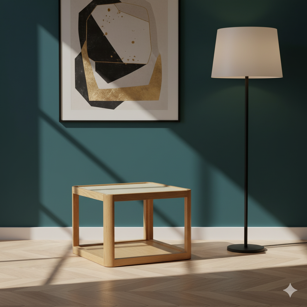Frame & Base: Solid wood (looks like oak or ash wood) with a straight-grain natural pattern.