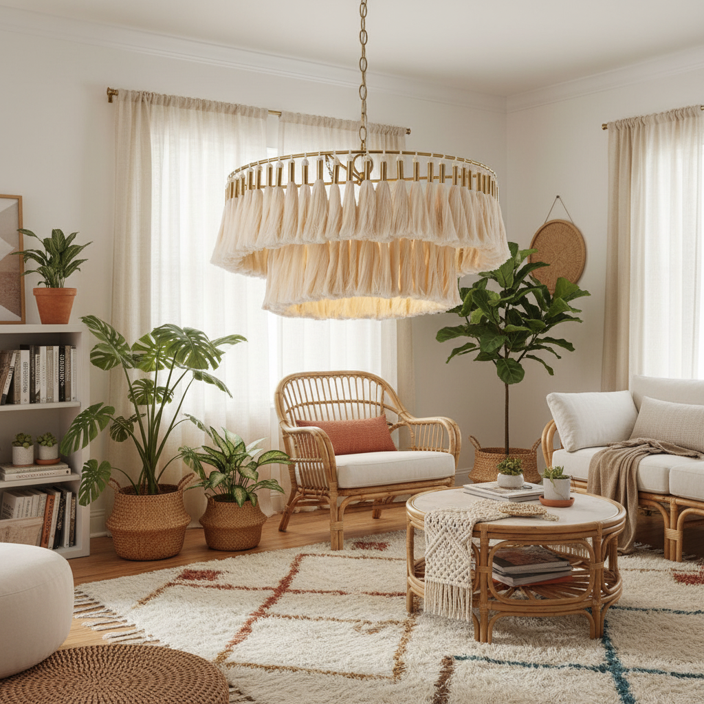 Finish: Natural, beige tones that enhance its warm, bohemian aesthetic.
