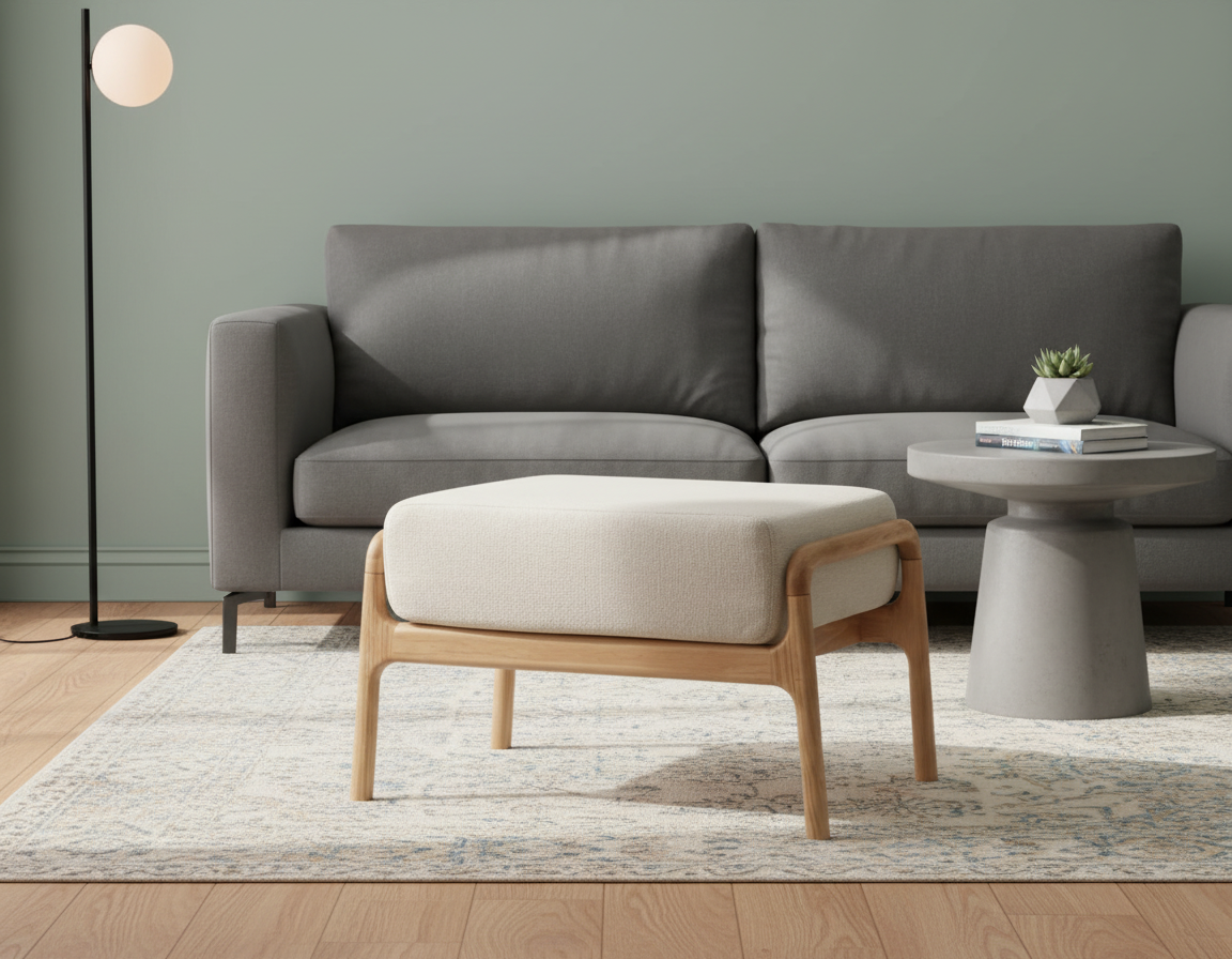 Rubber wood in natural polish. Jute finish soft fabric (Polyester fiber).