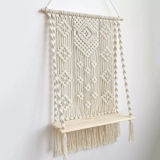 A macrame wall hanging shelf is a decorative and functional piece of home decor that combines the art of macramé with practical shelving. With a macrame wall hanging shelf, you can display your favorite items while adding a bohemian style to your space.