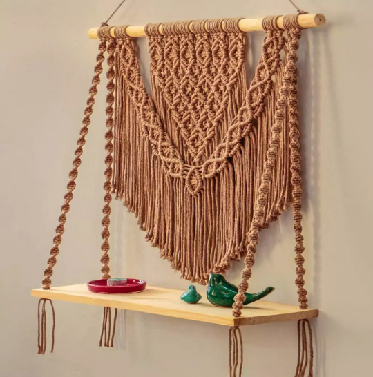 A macrame wall hanging shelf is a decorative and functional piece of home decor that combines the art of macramé with practical shelving. You can display your favorite items while adding a bohemian style to your space with a macrame wall hanging shelf.
