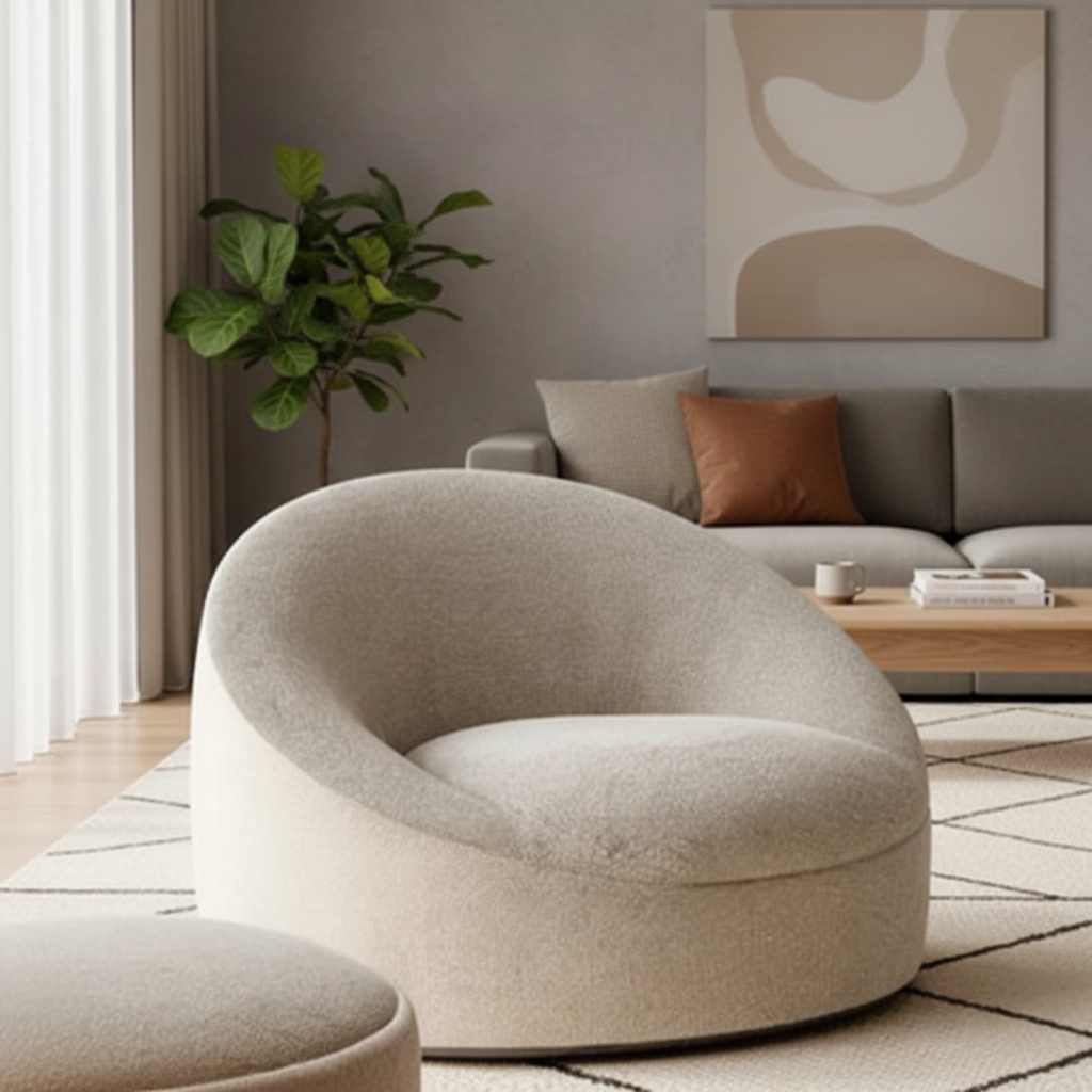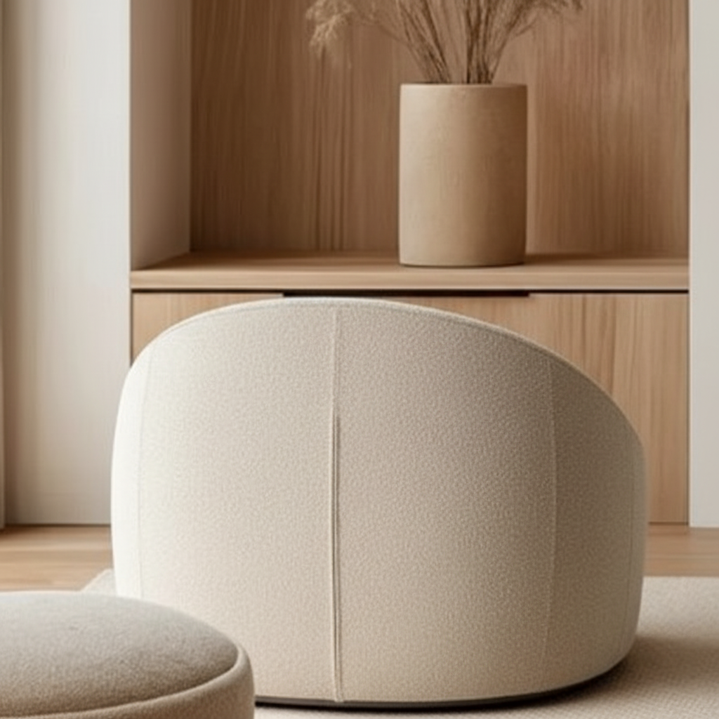 Rubber wood finish with natural polish legs. 5" High-Density Foam (40–45 density works well for comfort + durability) & for back 4" Medium-Density Foam Cushion finish with jute look soft fabric.