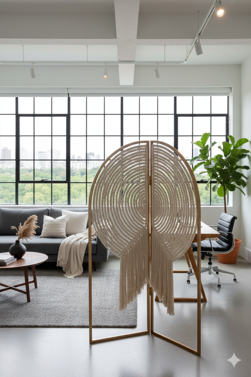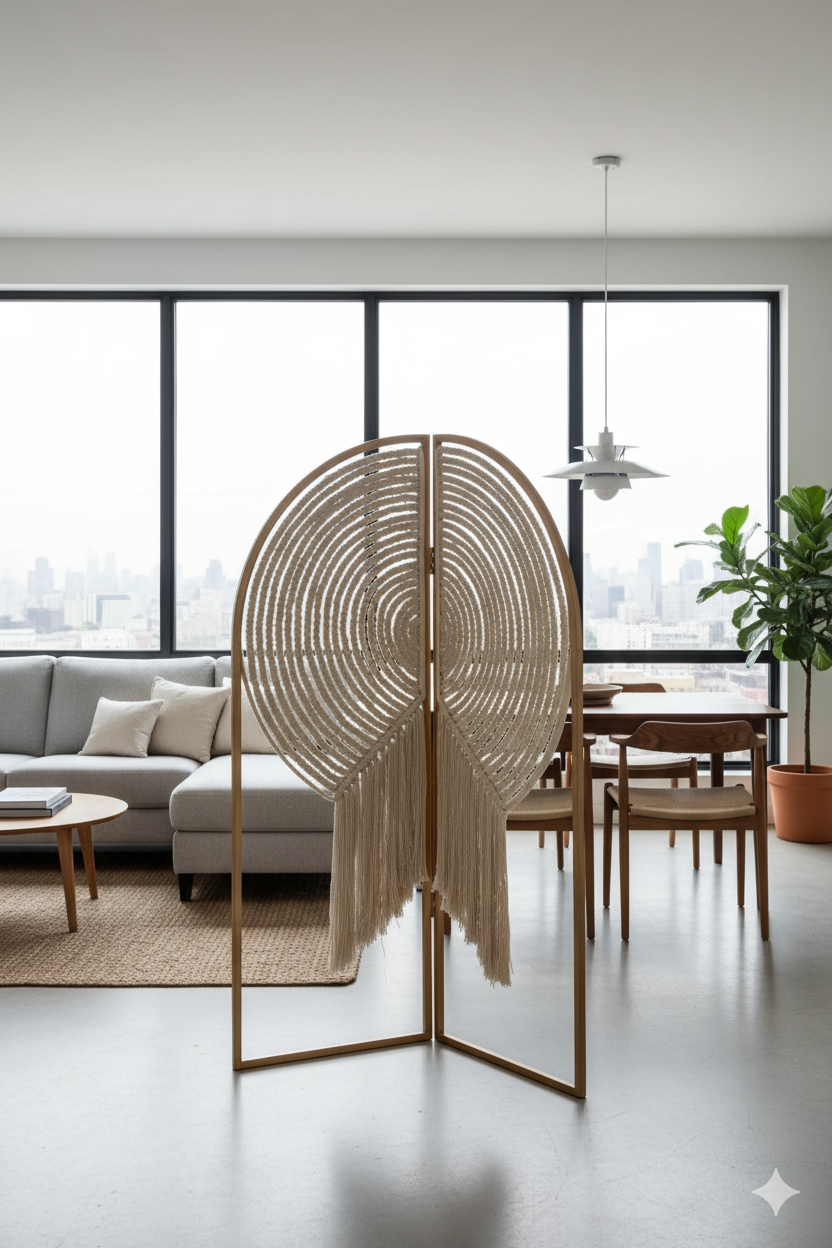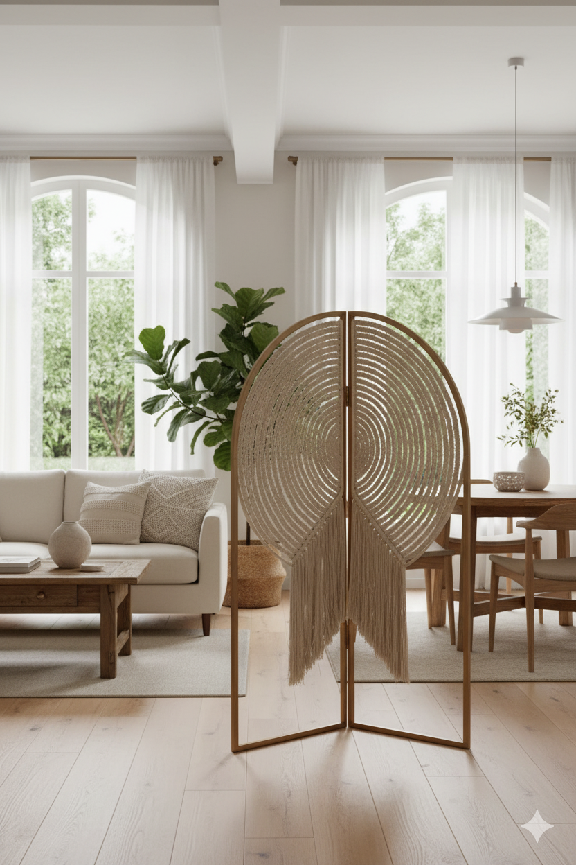 Panels: Accented with handwoven cotton rope and bamboo details for a warm, artisanal touch.