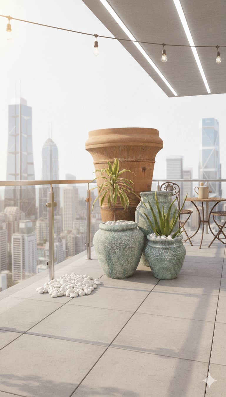 Color: Green, white stone & ribbed finish that complements both indoor and outdoor spaces.