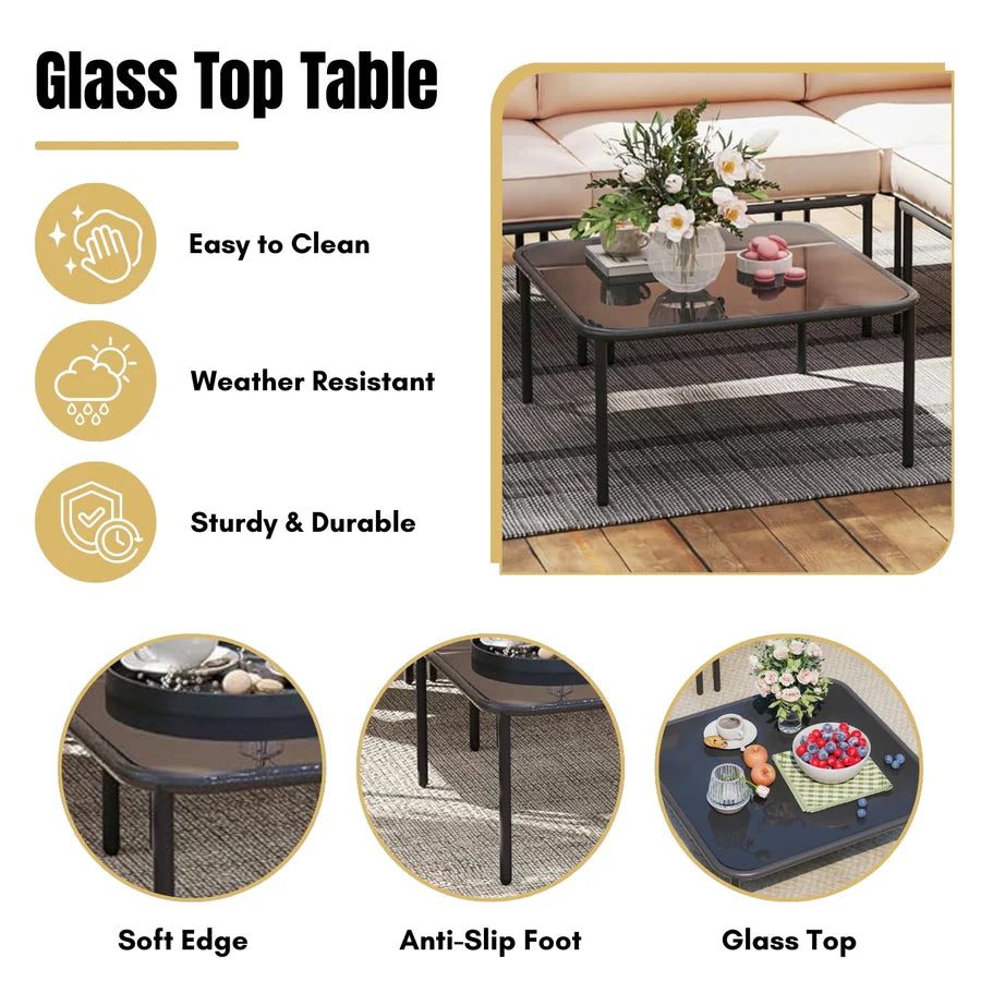Transform your outdoor living area into a stylish and inviting retreat with this premium L-shape outdoor rope sofa set, thoughtfully designed for use in gardens, decks, lawns, and poolside patios. Blending contemporary aesthetics with durable functionality, this set is crafted to elevate both comfort and outdoor elegance.