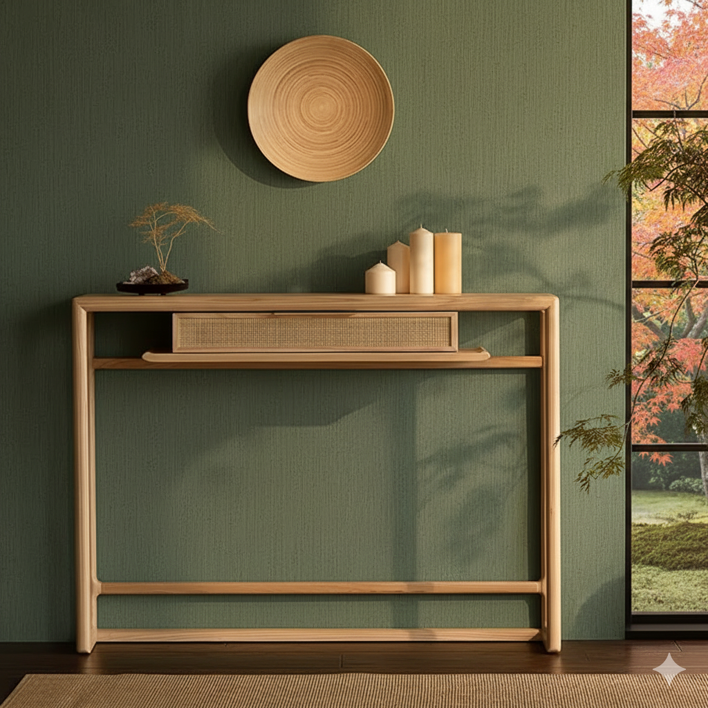 Sides: Handwoven natural rattan cane inlaid for a breathable, artisanal look.