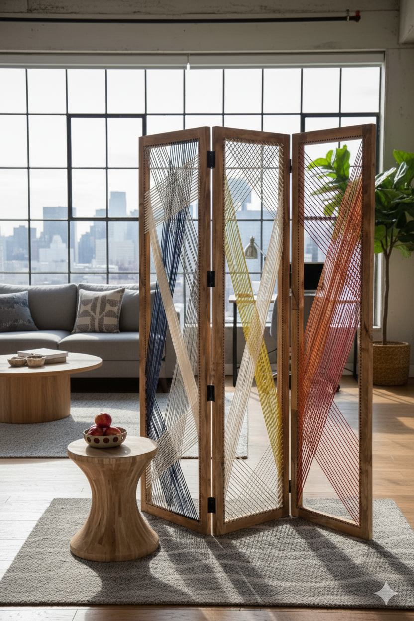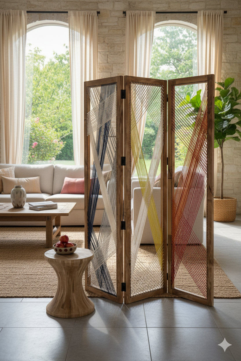 Panels: Accented with handwoven cotton rope and bamboo details for a warm, artisanal touch.