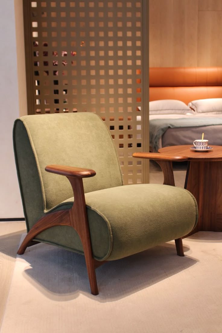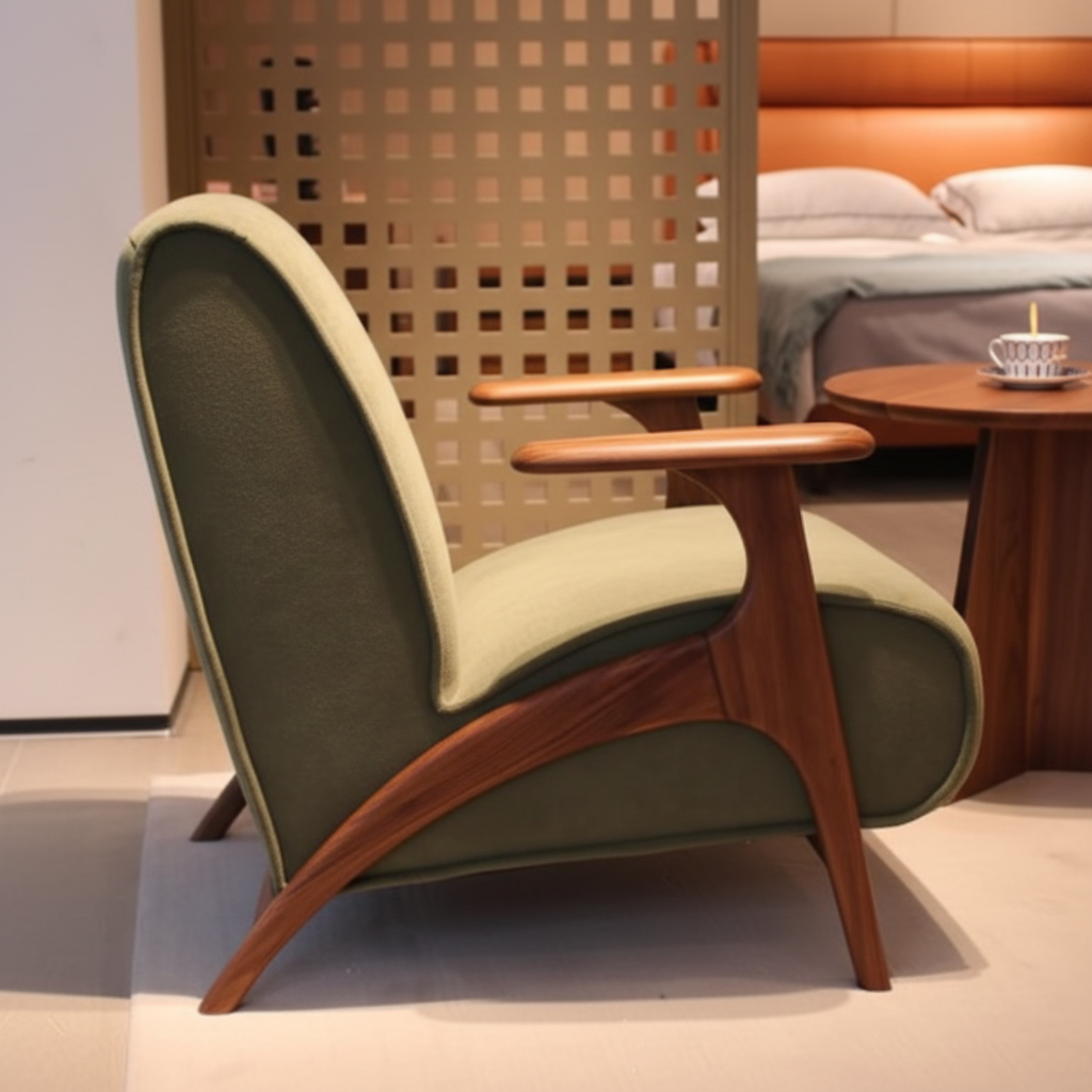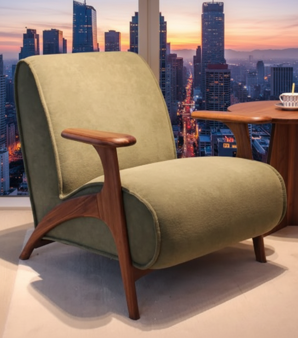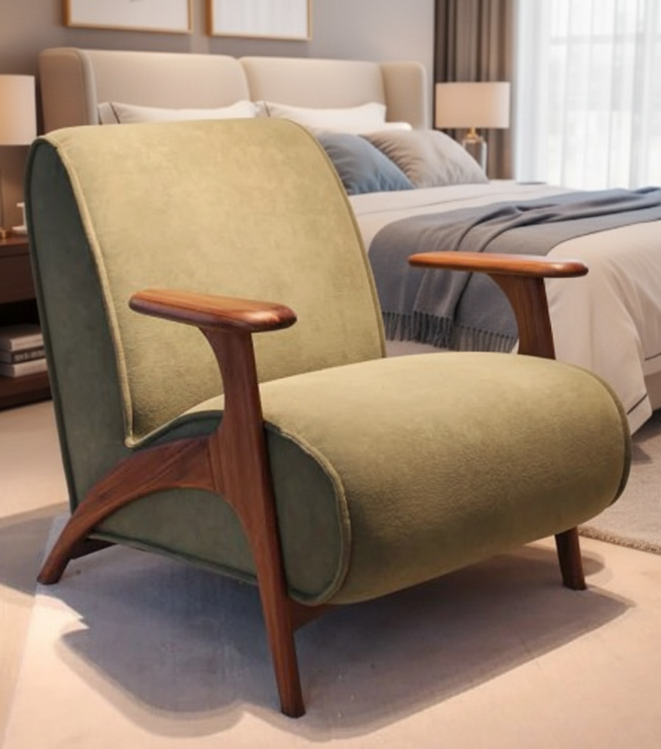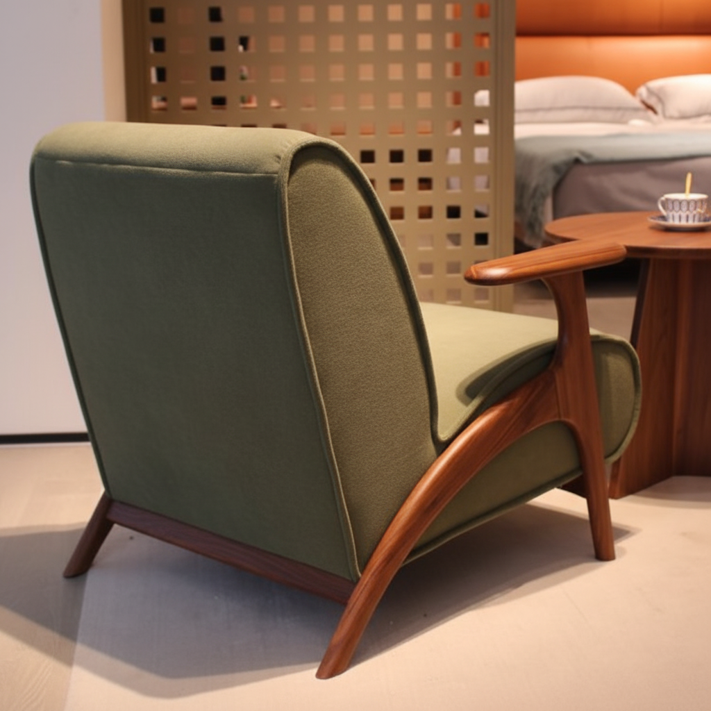Rubber wood finish with natural polish legs. 7" High-Density Foam (40–45 density works well for comfort + durability) & for back 5" Medium-Density Foam Cushion finish with jute look soft fabric.