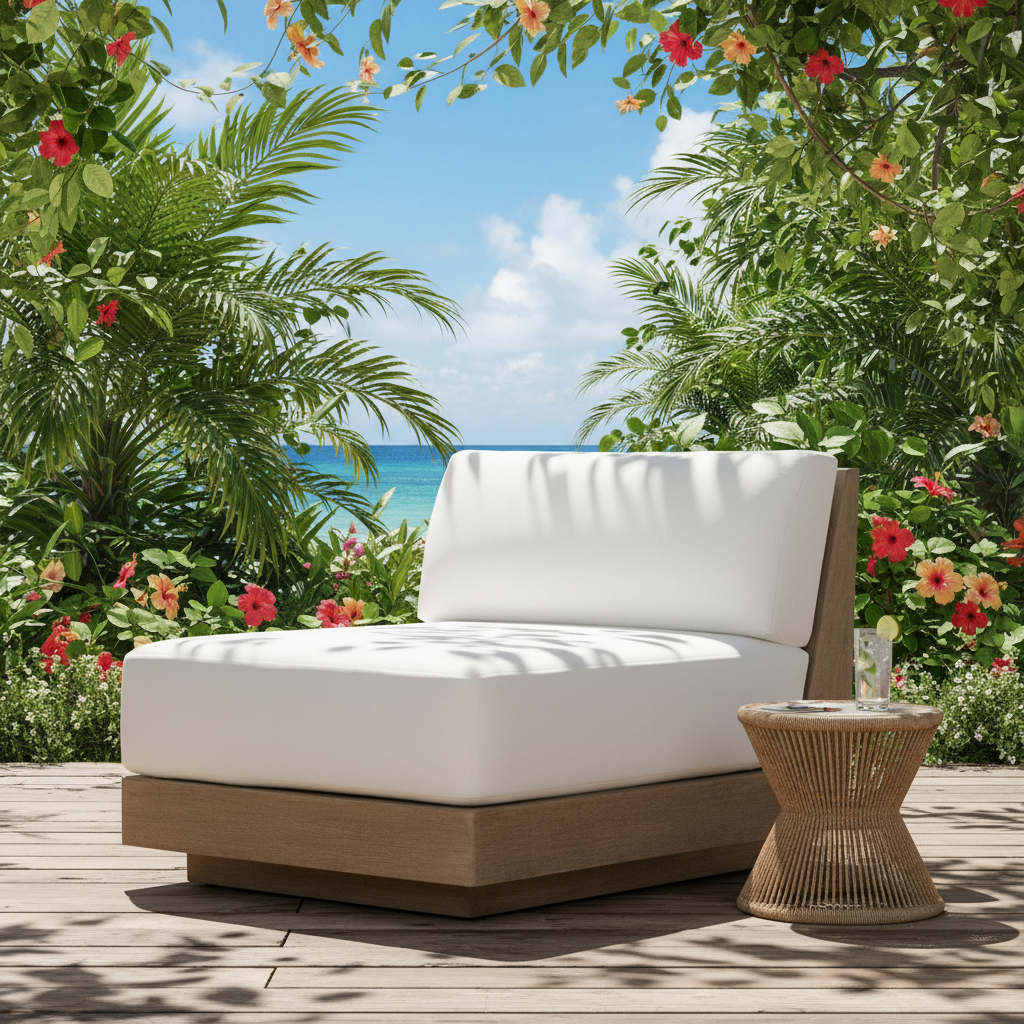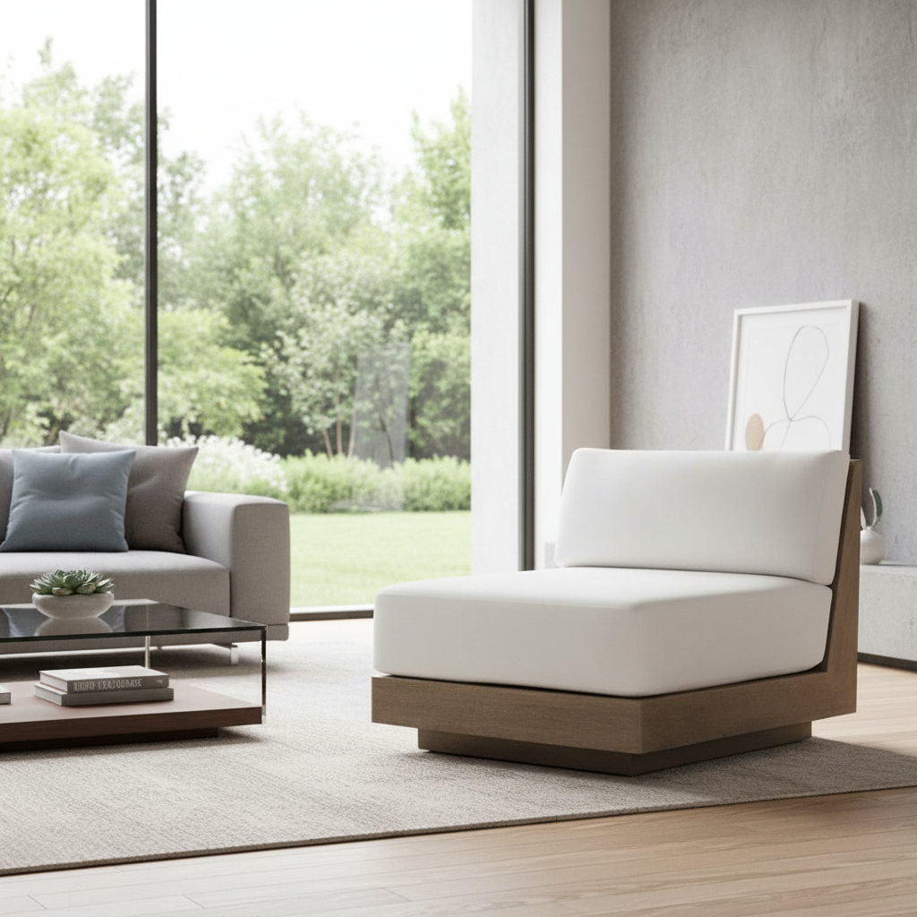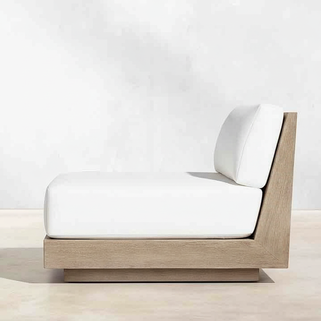 Rubber wood finish with natural polish legs. 5" High-Density Foam (40–45 density works well for comfort + durability) & for back 4" Medium-Density Foam Cushion finish with jute look soft fabric.