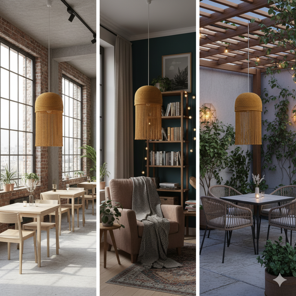 Finish: Natural, mustard, and olive tones that enhance its warm, bohemian aesthetic.